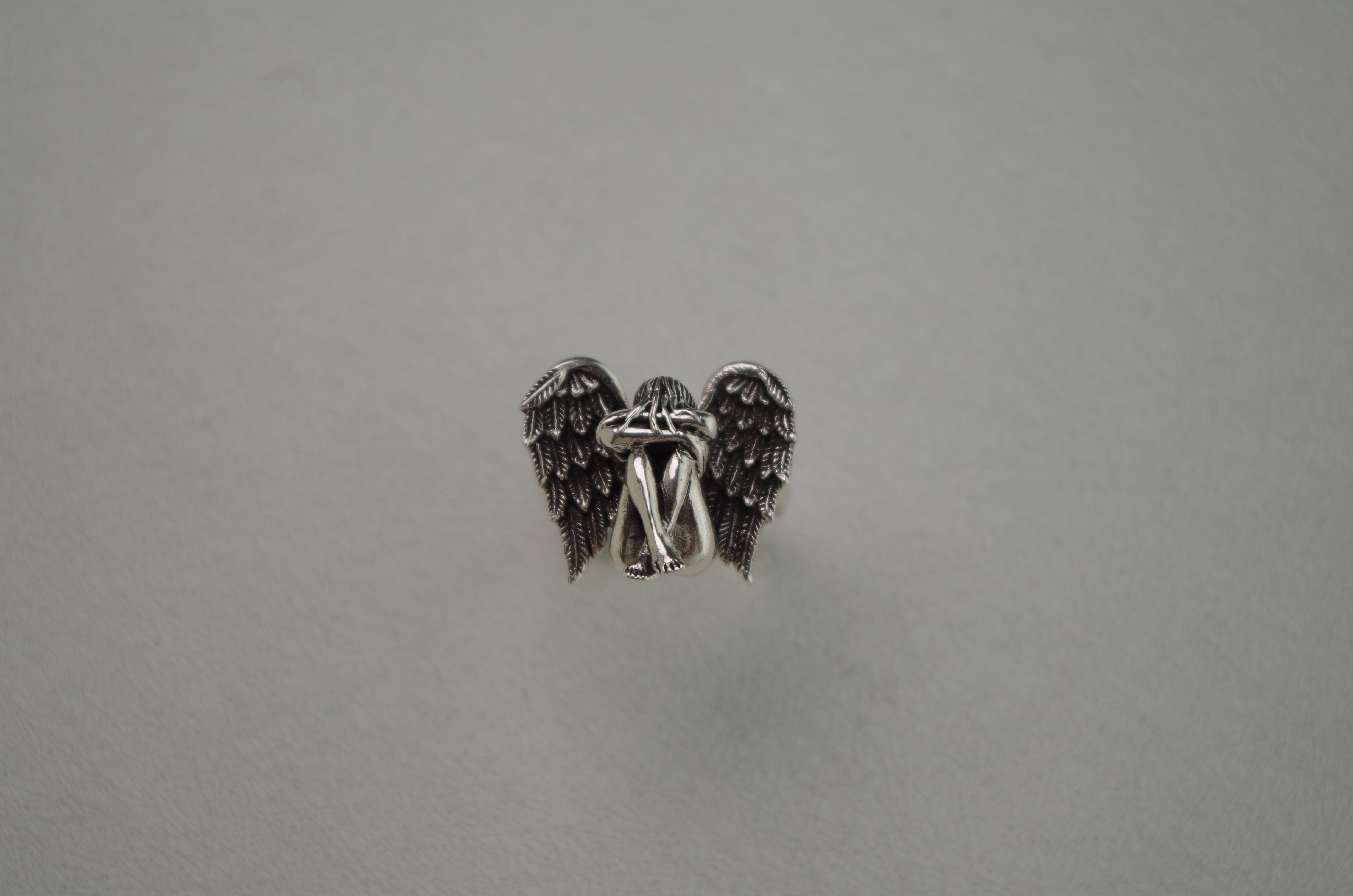 - a spectacular piece with intricately detailed wings and depicted with the angel holding her knees.