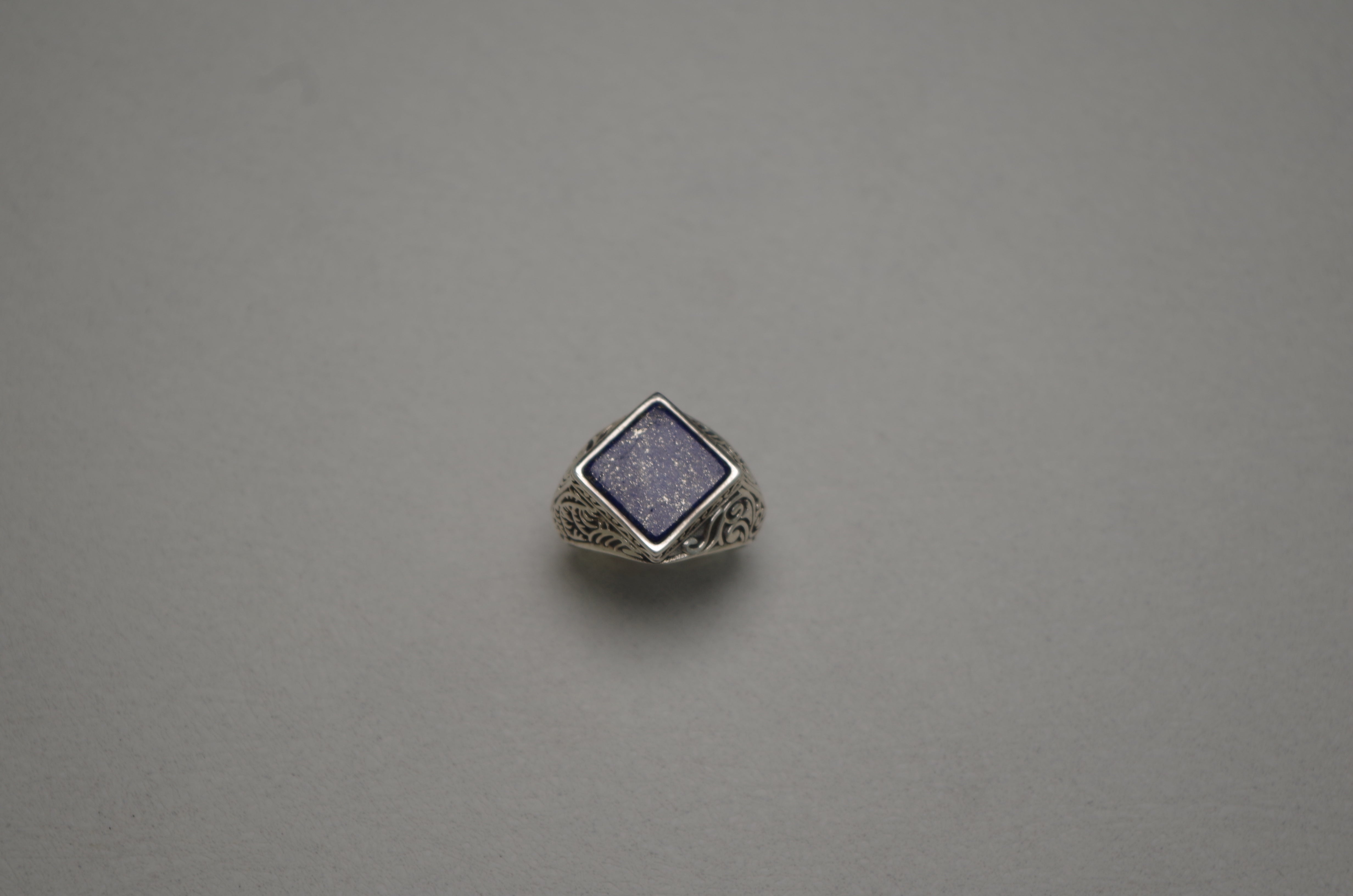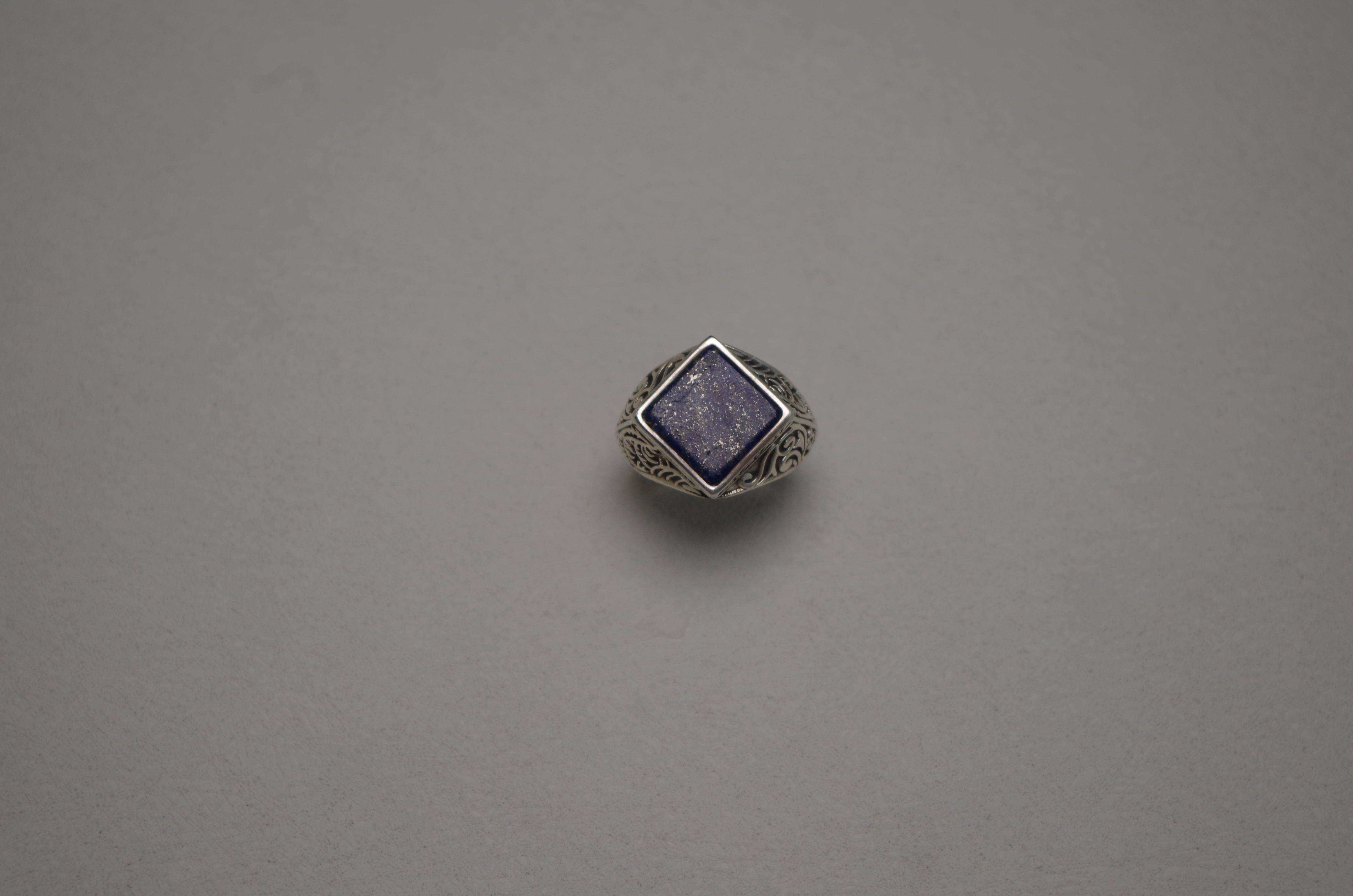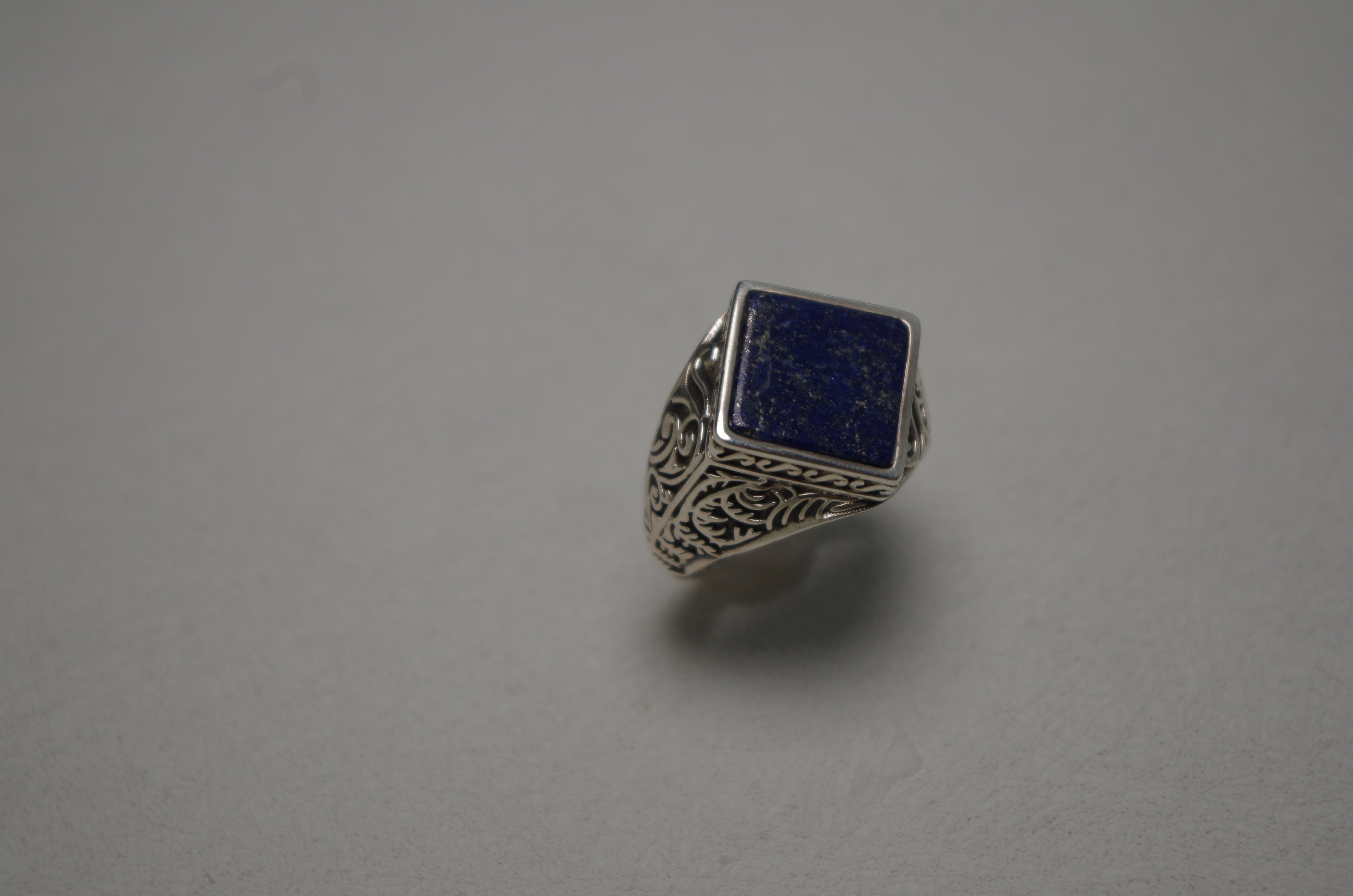 - a statement square shaped lapis ring with an angular, decorative thick 925 Sterling Silver ring.