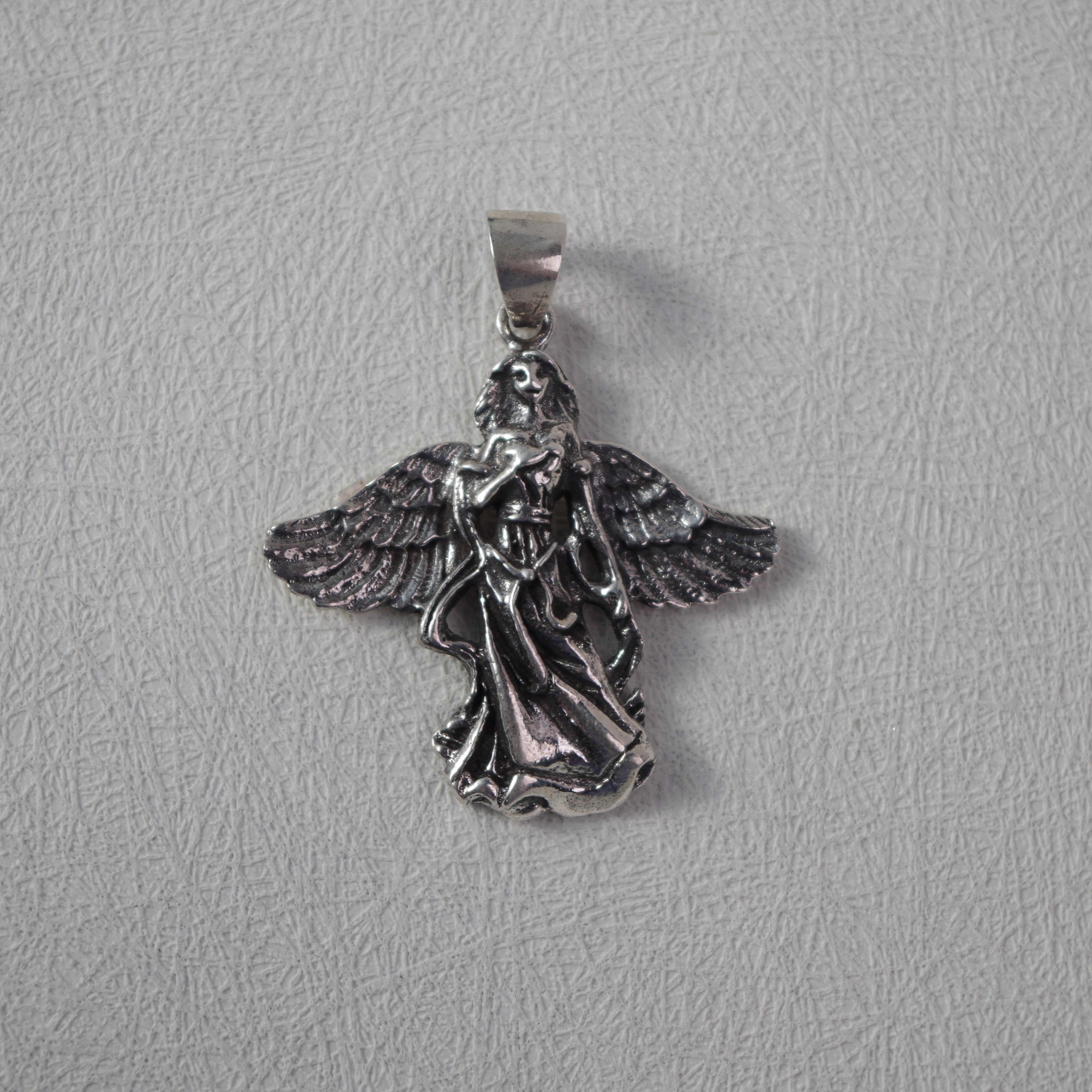 - a beautiful angel pendant meant for protection. the oxidized detailed wings and the flow of her dress is so ethereal.