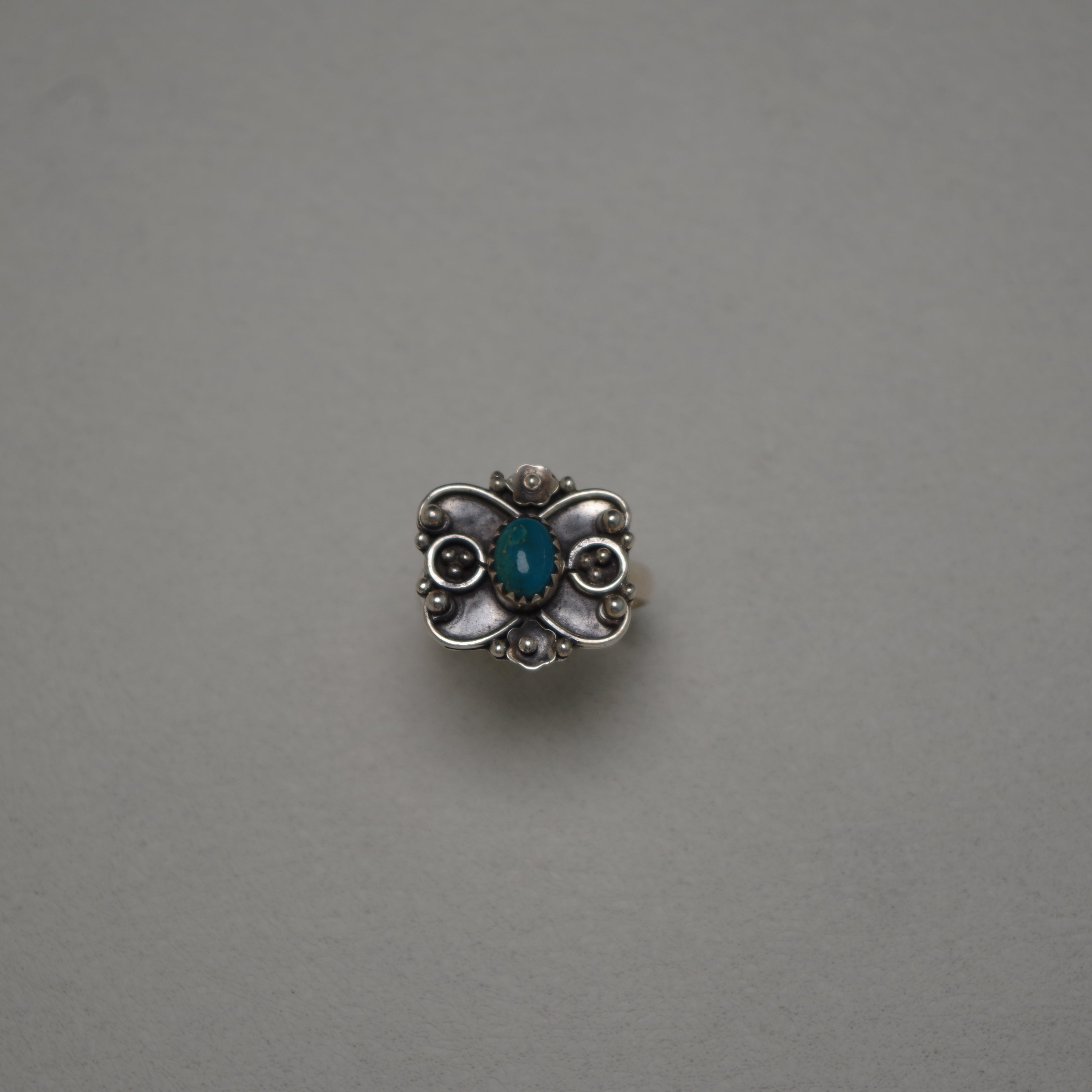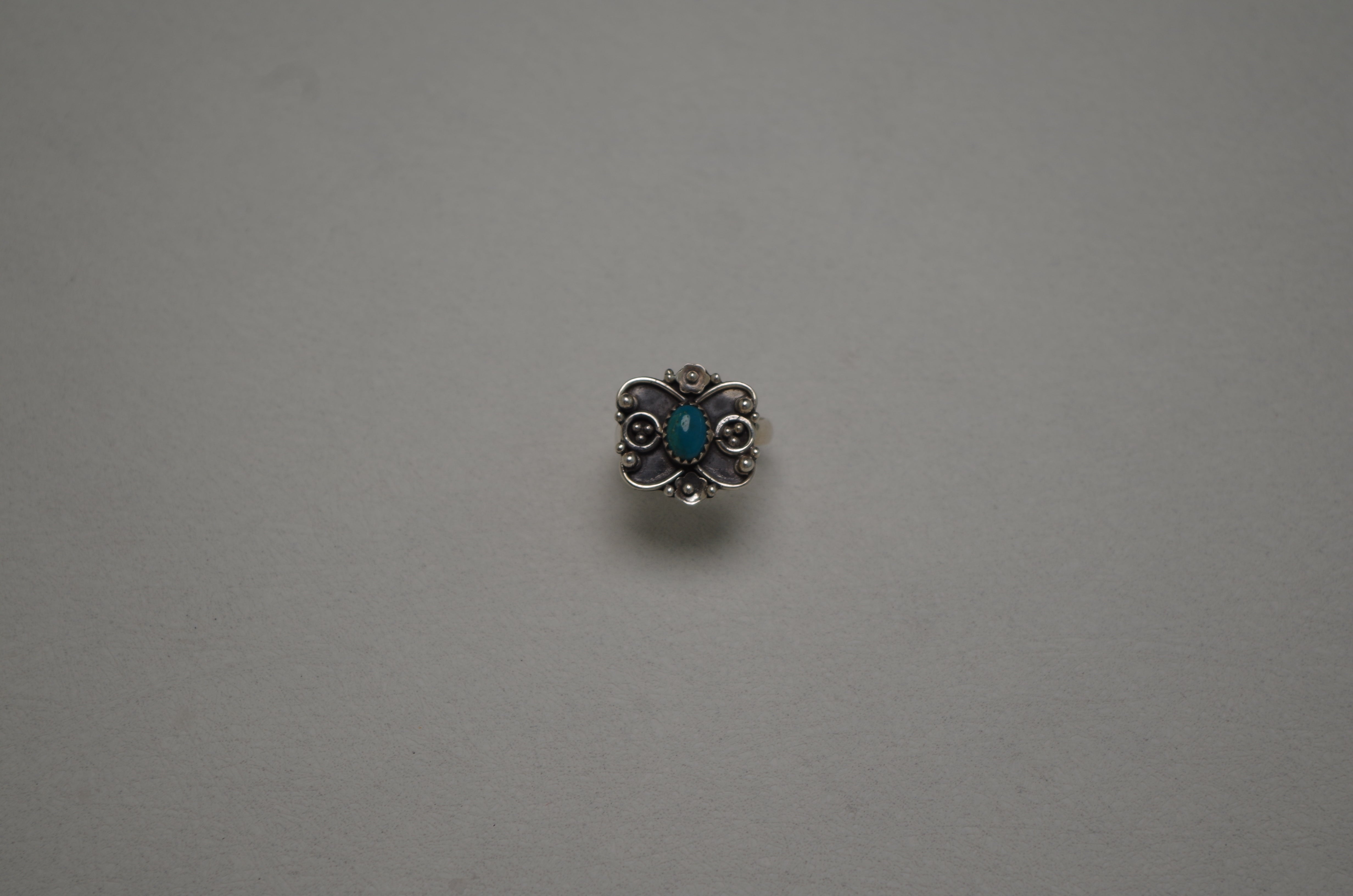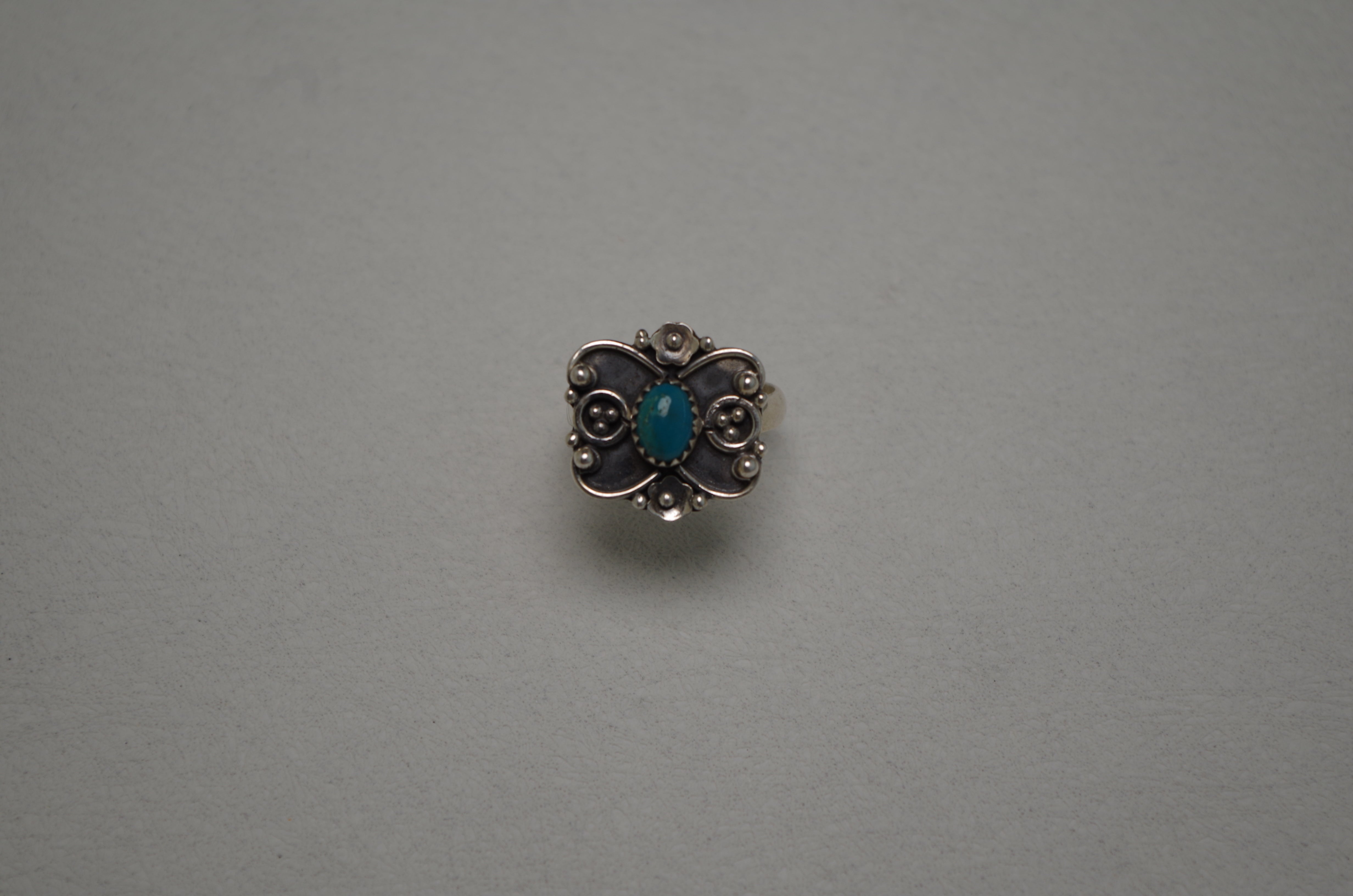 - beautiful rich blue turquoise stone set in an oxidized antique inspired 925 Sterling Silver setting